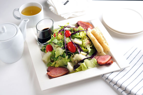 融入沙拉的靈魂醬汁,香甜帶著酸澀的油醋醬汁以及濃郁的胡麻醬汁,包裹著鮮脆的蔬菜,吃進口中的醬汁香氣,搭載著蔬果及主食的味道,迷人的使紅暈泛上臉龐。