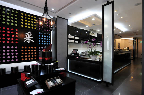 進門映入眼簾的,彩色原點牆壁,活潑的馬卡龍配色吸引眾人目光,奢華茶葉精品『采茶文化堂』是全店的製茶基底,櫃上的聞香罐更能輕鬆選擇所品的茶葉,選擇最適合自己的茶香。
